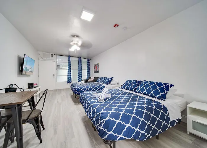 The beachfront 38 m² Deco Beachside Apt, W/2 Queen Beds, Washer/Dryer is also located only 7 minutes' stroll from Espanola Way Promenade. Guests can use Wi-Fi for either business or leisure reasons.
